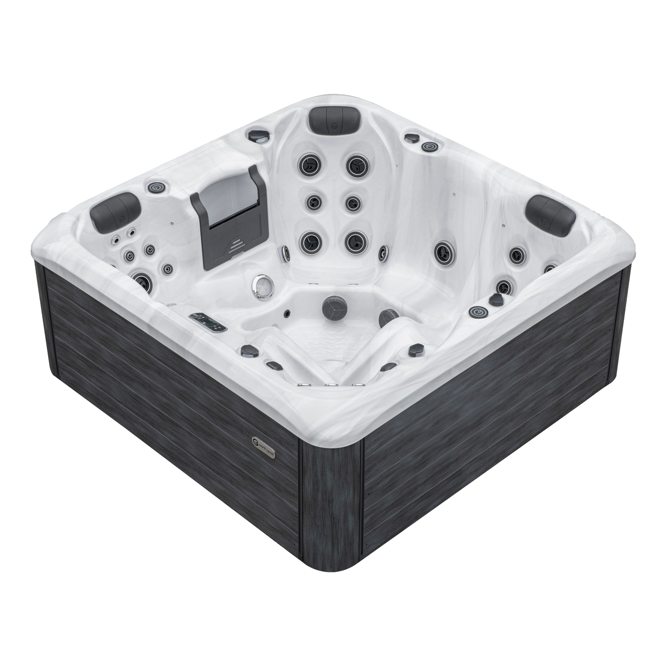 Compact overall design yet surprisingly spacious interior. This Dual lounge spa offers an ideal balance for both the taller and the shorter user. Extensive interior LED lighting pack plus exterior corner lighting strips. Bluetooth audio and subwoofer comes as standard. Colour matching spa side step and branded Earth Spas spa cover included.